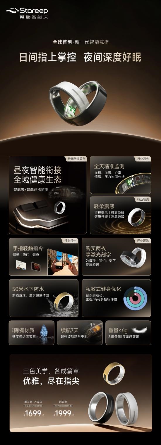 当别人还在比拼智能戒指功能多寡,Stareep希瑞已用“床+戒”的组合,讲述了一个完整的未来健康故事。清晰的生态战略、深度的健康洞察、人性的情感设计——这才是希瑞最难以复制的竞争力。后发,亦可制胜;破局,方能定义未来。希瑞不是在红海里追风,而是在格局上破局!